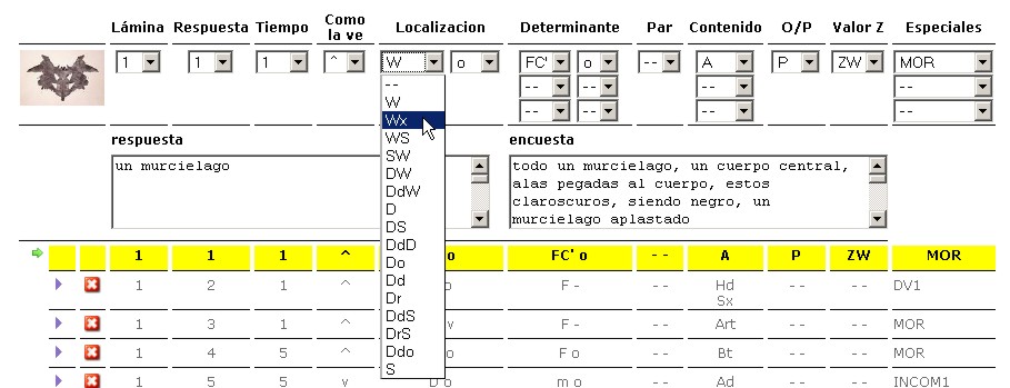 c?lculo del test de Rorschach "on line" seg?n el Sistema Comprehensivo de John Exner Indice C?mo empez? esto C?mo funciona Banco de pruebas Contactar |